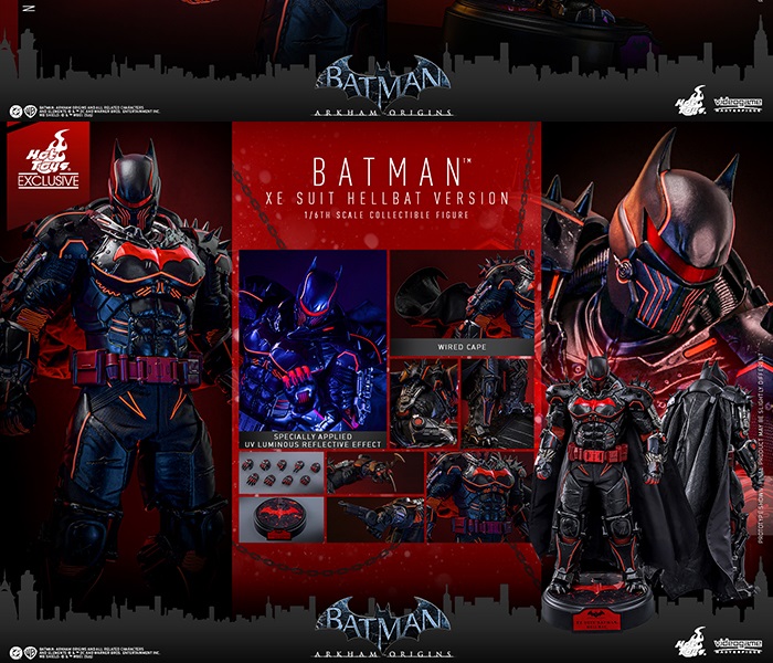 상품명배트맨: 아캄 오리진 - 1/6 배트맨 XE 슈트 헬배트 버전한정판구성 및 디테일1/6스케일 액션피규어(높이 약 33cm)새롭게 개발된 헬배트 스타일의 헬멧 해드약 30개 이상의 관절을 가진 근육질 바디* 의 상전기 도금 처리된 붉은 배트 심볼, 붉은 라인 디테일, UV 발광 반사 효과,웨더링 효과가 적용된 중무장 배트맨 XE 슈트 헬배트 버전 1검정색 망토 1(와이어 내장)붉은색 유틸리티 벨트 1검정색 아머 롱 부츠 1켤레* 무 기그랩넬 건 1,배트랑 1* 엑세서리