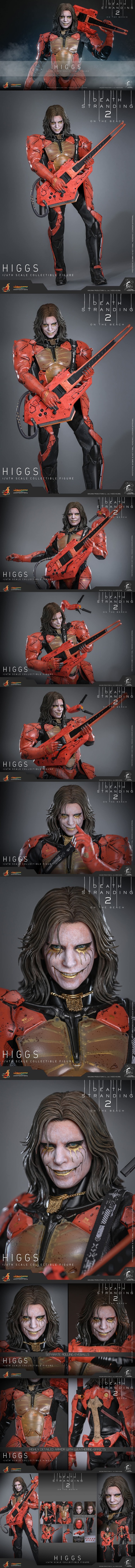 1/6스케일 액션피규어(높이 약 32.5cm)**특징*** “데스 스트랜딩 2: 온 더 비치”에 등장하는 힉스(트로이 베이커) 얼굴을 사실적으로 재현* 분리형 롤링 아이볼을 적용한 신규 조형 헤드* 정교하게 조각된 짙은 갈색의 중간 길이 헤어스타일* 게임 설정과 일치하는 메이크업 및 피부 질감 표현* 23개 가동 포인트를 가진 바디* 의상 및 액세서리에 특별 웨더링(사용감) 효과 적용* 교체용 장갑 핸드 파츠 9개 포함:* 이완 손 1쌍* 권총 파지 손 1쌍* 기타 파지 손 1쌍* 기타 지지용 왼손 1개* 기타 연주용 오른손 1개* 마스크 파지용 오른손 1개**의상(Costume)*** 블랙 컬러 수트 1벌* 골드 컬러 목걸이 1개* 오렌지 컬러의 정교한 아머 세트 1식:* 팔 아머 1쌍* 반투명 흉부 및 복부 아머 1개* 백 아머 1개* 허벅지 아머 1쌍* 외골격(엑소스켈레톤) 1쌍* 블랙 컬러 부츠 1쌍**무기(Weapons)*** 권총(Pistol) 1자루* 배틀 기타(Battle Guitar) 1자루**액세서리(Accessories)*** 레드 컬러 마스크 1개* 오드라덱(Odradek) 1개 (백 아머에 장착 가능)* 기타 스트랩 1개 (배틀 기타에 장착 가능)* 거트 끈 1개 (힉스 허리와 배틀 기타 사이에 연결 가능)* “Death Stranding 2: On the Beach” 로고 및 캐릭터 네임플레이트가 포함된디스플레이 스탠드