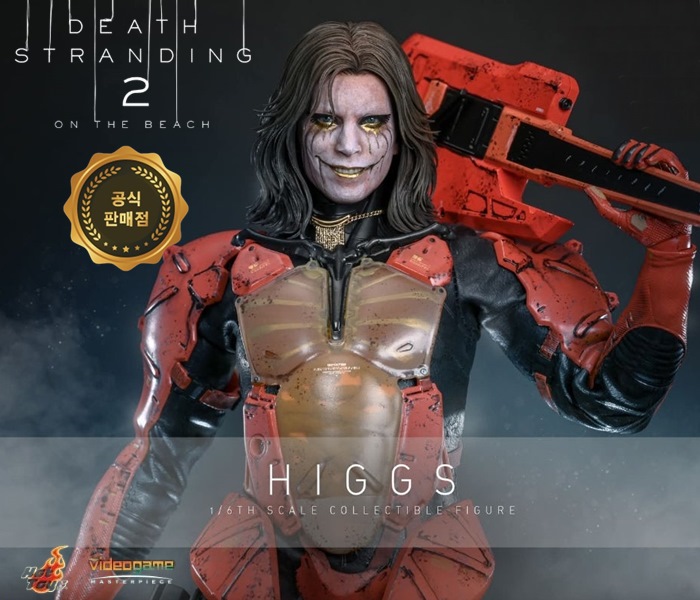 1/6스케일 액션피규어(높이 약 32.5cm)**특징*** “데스 스트랜딩 2: 온 더 비치”에 등장하는 힉스(트로이 베이커) 얼굴을 사실적으로 재현* 분리형 롤링 아이볼을 적용한 신규 조형 헤드* 정교하게 조각된 짙은 갈색의 중간 길이 헤어스타일* 게임 설정과 일치하는 메이크업 및 피부 질감 표현* 23개 가동 포인트를 가진 바디* 의상 및 액세서리에 특별 웨더링(사용감) 효과 적용* 교체용 장갑 핸드 파츠 9개 포함:* 이완 손 1쌍* 권총 파지 손 1쌍* 기타 파지 손 1쌍* 기타 지지용 왼손 1개* 기타 연주용 오른손 1개* 마스크 파지용 오른손 1개**의상(Costume)*** 블랙 컬러 수트 1벌* 골드 컬러 목걸이 1개* 오렌지 컬러의 정교한 아머 세트 1식:* 팔 아머 1쌍* 반투명 흉부 및 복부 아머 1개* 백 아머 1개* 허벅지 아머 1쌍* 외골격(엑소스켈레톤) 1쌍* 블랙 컬러 부츠 1쌍**무기(Weapons)*** 권총(Pistol) 1자루* 배틀 기타(Battle Guitar) 1자루**액세서리(Accessories)*** 레드 컬러 마스크 1개* 오드라덱(Odradek) 1개 (백 아머에 장착 가능)* 기타 스트랩 1개 (배틀 기타에 장착 가능)* 거트 끈 1개 (힉스 허리와 배틀 기타 사이에 연결 가능)* “Death Stranding 2: On the Beach” 로고 및 캐릭터 네임플레이트가 포함된디스플레이 스탠드