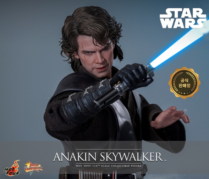 1/6스케일 액션피규어(높이 약 31cm)- 영화 『스타워즈: 시스의 복수』헤이든 크리스텐슨이 연기한 아나킨 스카이워커의 사실적이고 정교한 외형 구현- 교체 가능한 분리형 가동 안구를 탑재한 신규 개발 헤드 조형- 교체 가능한 안구 2쌍 포함:- 파란색 홍채 안구 1쌍- 시스의 노란색 홍채 안구 1쌍- 영화 고증 얼굴 표정, 얼굴 흉터 및 섬세한 피부 질감- 교체 가능한 앞머리 조형 2종이 포함된 정교하게 조형된 짙은 갈색 중간 길이의 곱슬 헤어스타일- 30개 이상의 관절을 가진 바디- 교체 가능한 손 파츠 9개 포함:- 주먹손 1쌍- 이완된 오른손 1개- 라이트세이버 잡는 손 1쌍- 포스 사용하는 손 1쌍- 반쯤 펼친 포스 사용하는 왼손 1개- 완전히 펼친 포스 사용하는 왼손 1개의상- 웨더링 효과가 가미된 정교한 아나킨 스카이워커 의상 세트 1벌, 포함 내역:- 검은색 가죽 질감의 태버드 1개- 짙은 갈색의 아우터 튜닉 1개- 짙은 갈색의 이너 튜닉 1개- 은색 버클이 있는 검은색 유틸리티 벨트 1개 (검은색 라이트세이버 손잡이 홀더 및 파우치 부착)- 짙은 갈색 바지 1벌- 검은색 가죽 질감의 롱부츠 1켤레무기- LED 라이트 라이트세이버 손잡이 1개 (USB 전원)- 라이트세이버 손잡이 1개- 파란색 라이트세이버 블레이드 1개 (LED 라이트 라이트세이버 손잡이 및 라이트세이버 손잡이에 장착 가능)- 휘두르는 효과의 파란색 라이트세이버 블레이드 1개 (LED 라이트 라이트세이버 손잡이 및 라이트세이버 손잡이에 장착 가능)- 빨간색 라이트세이버 블레이드 1개 (라이트세이버 손잡이에 장착 가능)- 휘두르는 효과의 빨간색 라이트세이버 블레이드 1개 (라이트세이버 손잡이에 장착 가능)액세서리- 무스타파르의 팬닝 드로이드(가동형 팔)와 반투명 용암 효과가 포함된 특별 제작 디오라마 피규어 베이스- 스타워즈 로고와 캐릭터 명판이 포함된 특별 제작 모래 테마 피규어 스탠드